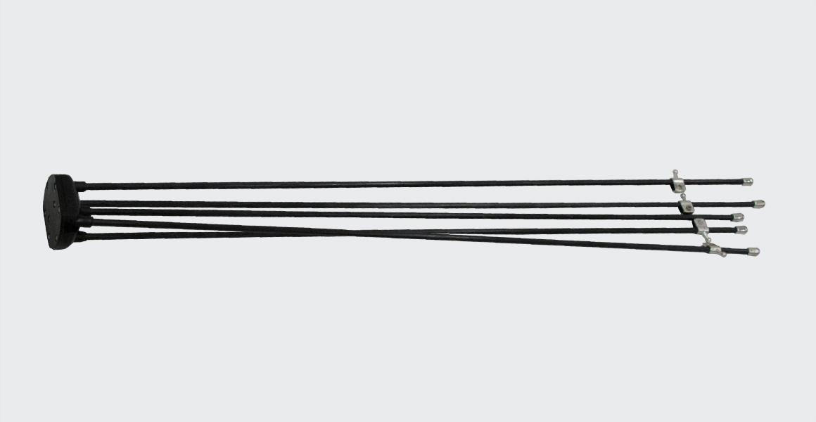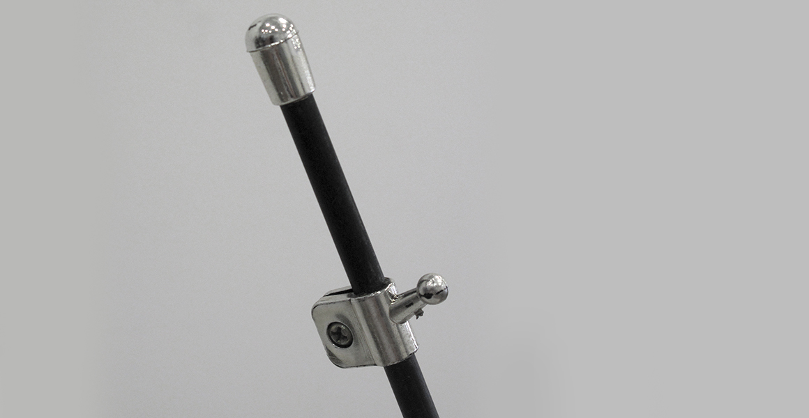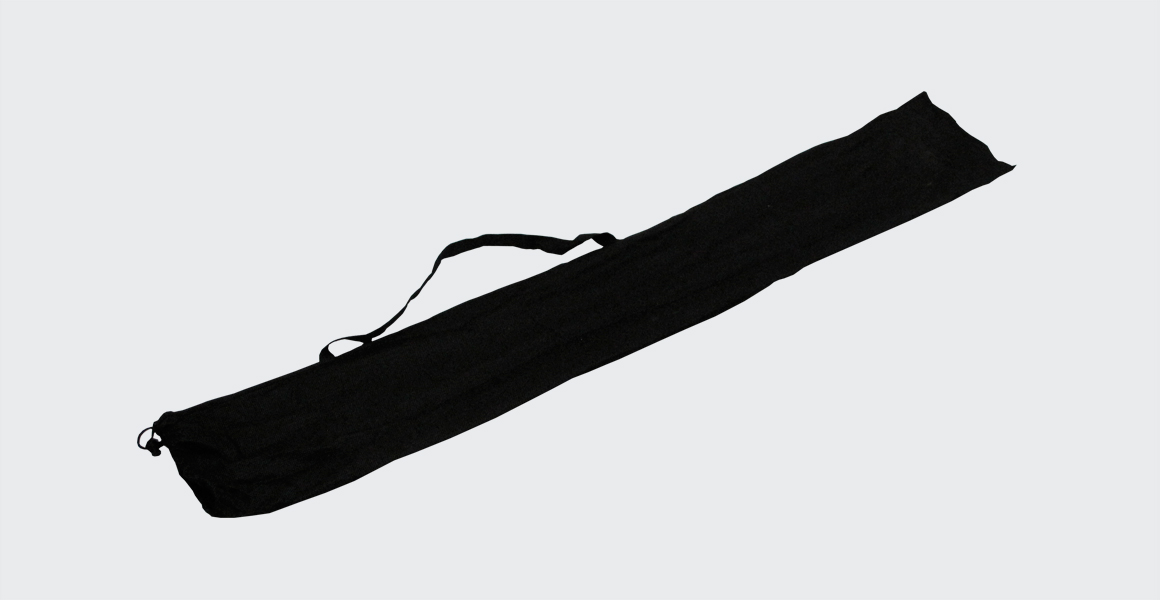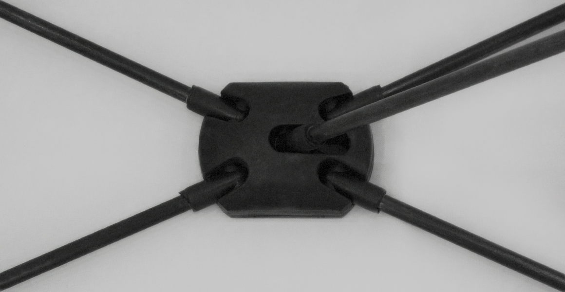 Expositor estático em forma de X. Método de fixação do poster por aplicação de 4 ilhós nos cantos e posterior encaixe nas extremidades, de modo a flectir a estrutura e consequente tensionamento do grafismo.